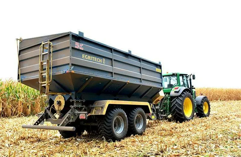 Бункер має об’єм кузова 20 м³, вантажопідйомність 15 тонн і необхідну потужність трактора від 180 к.с. Бункер оснащений тандемною підвіскою, гідро/пневматичною гальмівною системою, водонепроникним тентом і ваговою системою з термопринтером, GPS, GPRS. Бункер виробляється компанією Егрітек, яка є українським лідером у виробництві сільськогосподарської техніки.