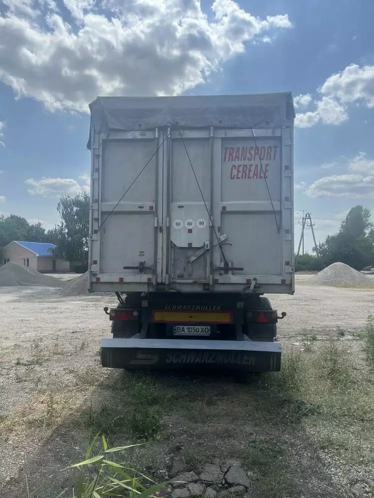 Причіп-зерновоз Schwarzmueller 2007 р. Тип самоcкид. Об'єм 60 м3, тара 7100. Матеріал кузова алюміній, рама металева. Є в задній частині причіпу лючок